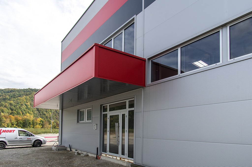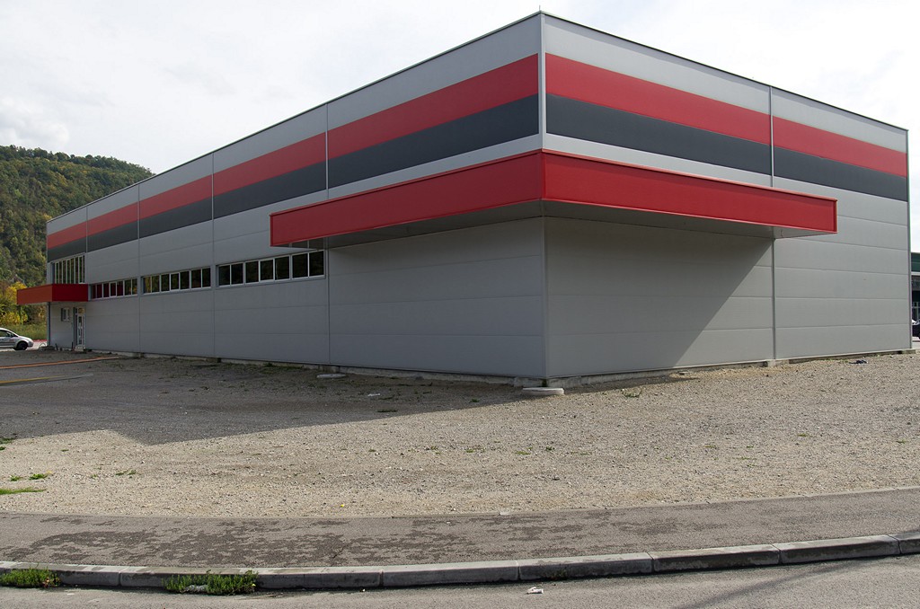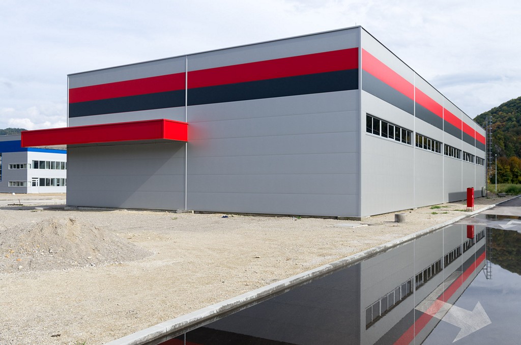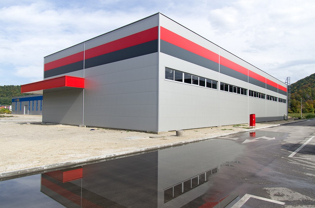 Poslovna hala u industrijskoj zoni B.Krupe primjer kombinacije aluminijskih elemenata.